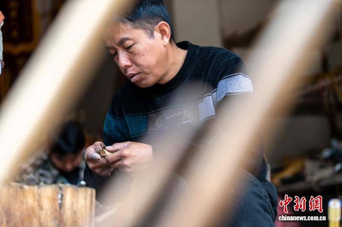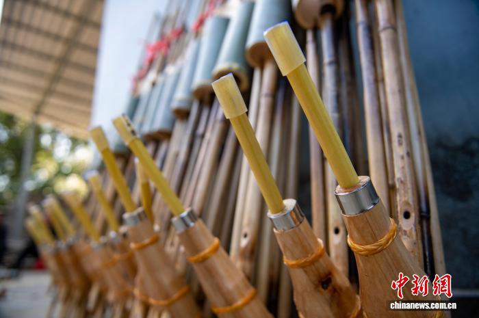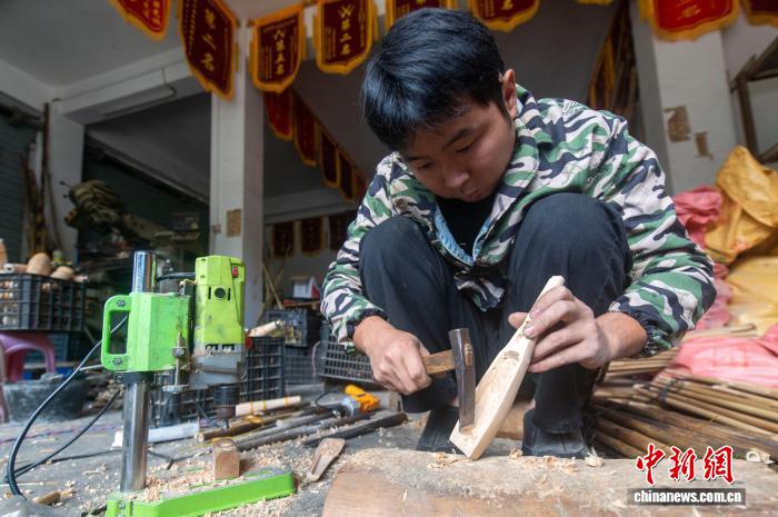 图为芦笙造做脚优伶梁光入正在造做芦笙管。吴德军 摄