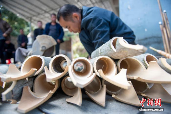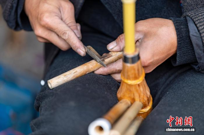 图为芦笙造做脚优伶梁光入正在造做芦笙管。吴德军 摄
